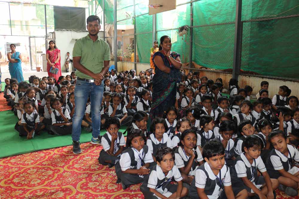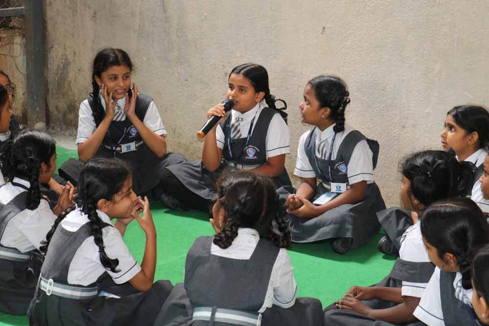 We conducted the co-curricular activity of “Anthyakshari” on 18-07-19.Students from I to IV standard participated . Student sang the songs from different languages.Students enjoyed and became a observer by this activity.As this activity helped the students to showcase their singing skill and observation skill.