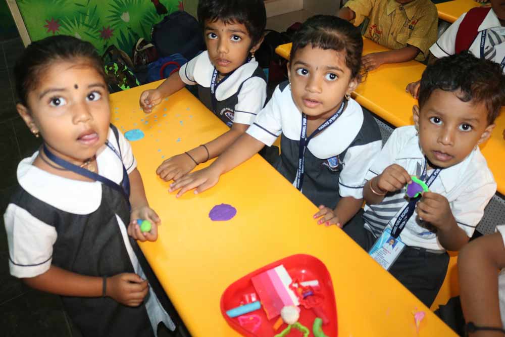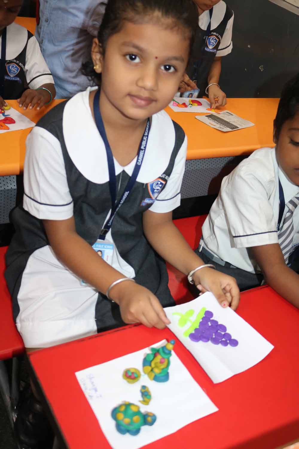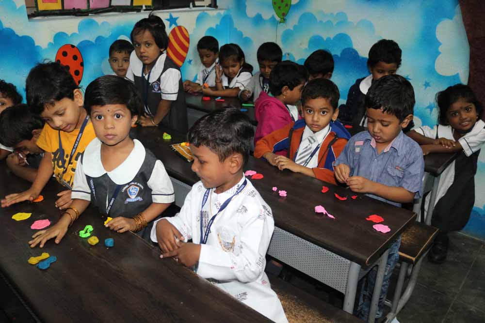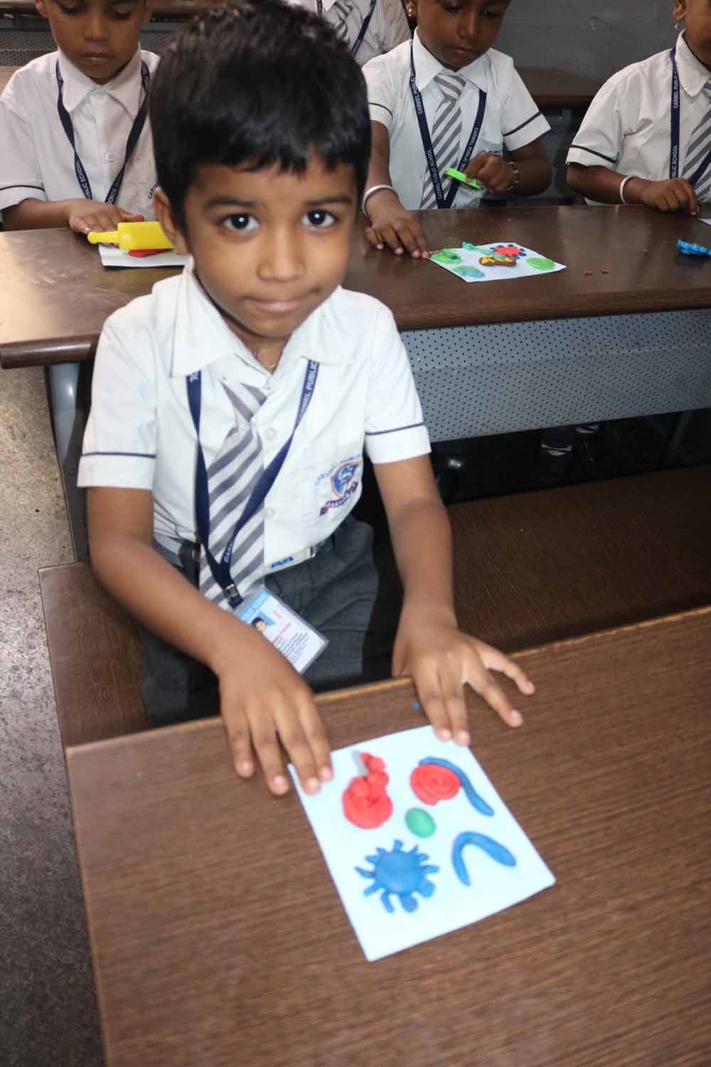 Clay Modeling is the most easily recognized form of sculpting.We conducted clay modeling activity for Nursery,L.K.G and U.K.G on 25-07-19 Thursday.The children were brought clay of different colours. Our teachers helped the kids to mould the clay and also the kids used their imagination to mould beautiful creations like butterfly,sun,grapes,snakes,snail and many more.