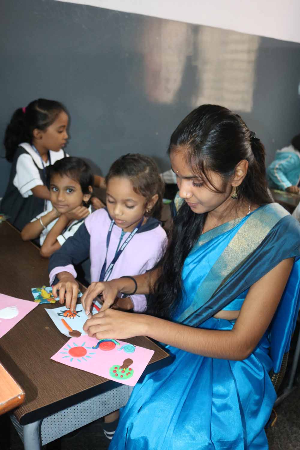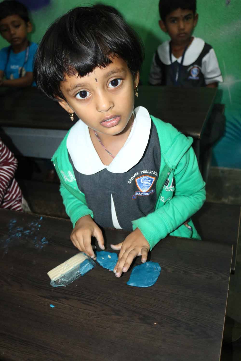 The motive of this activity was to stimulate the imagination of the children.This enhanced their eye-hand co-ordination, colour recognition,fine motor skills and increases concentration.