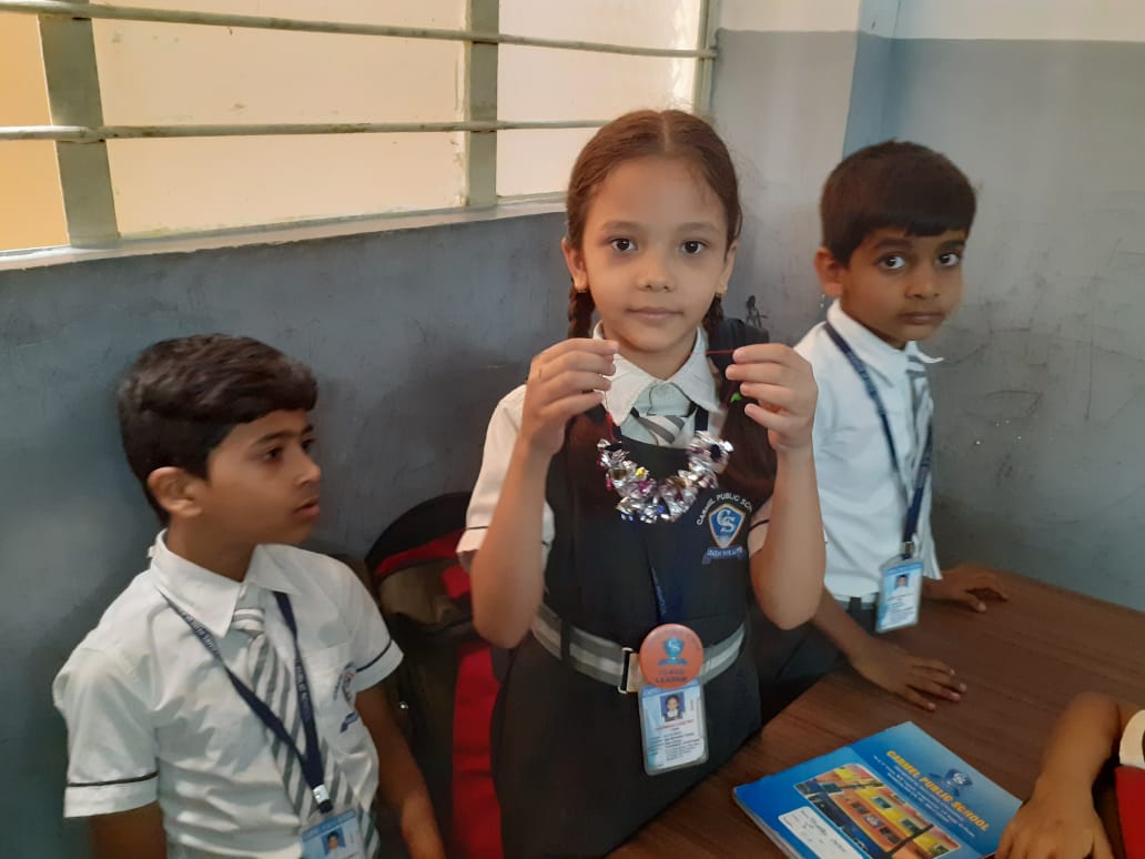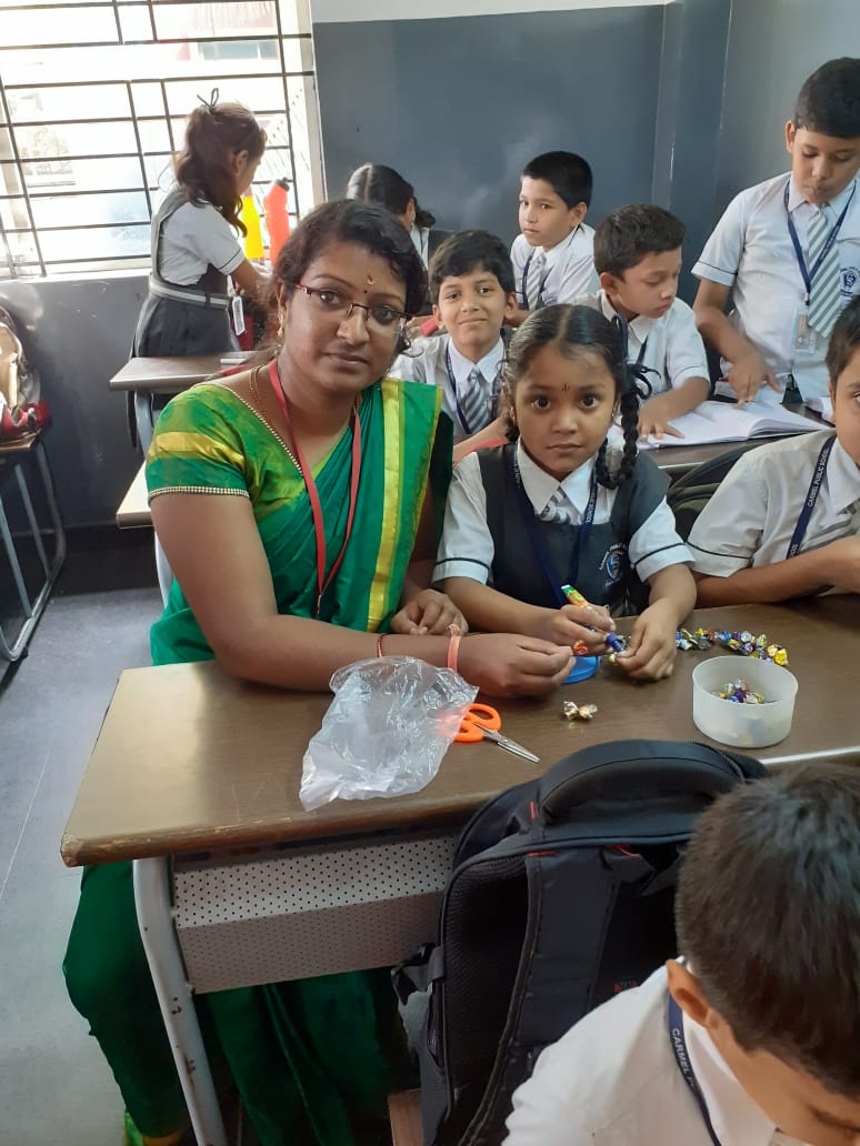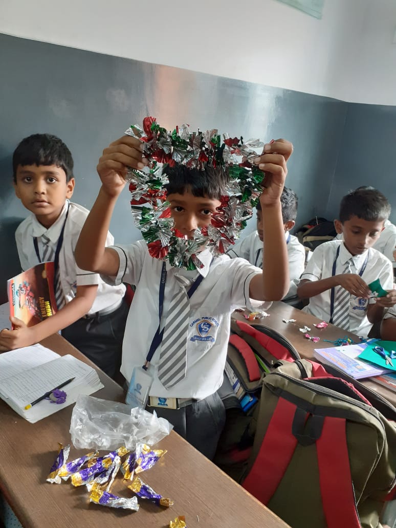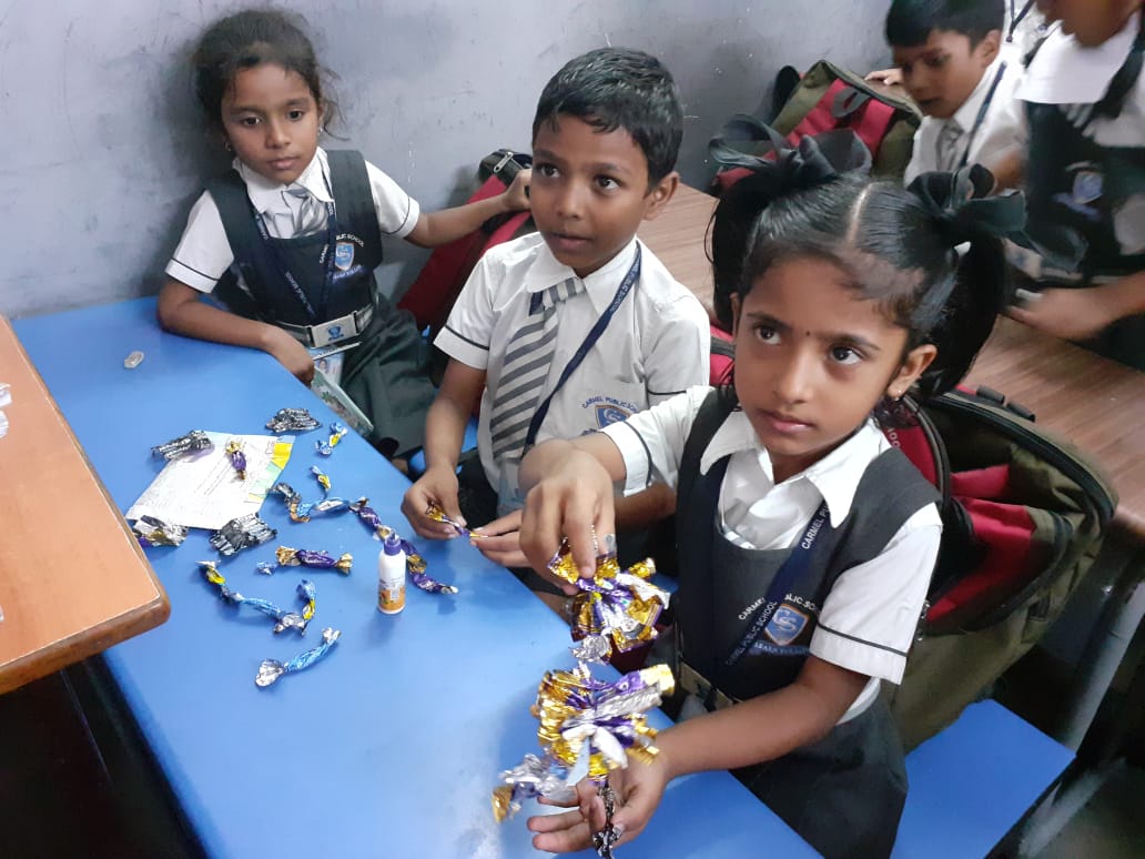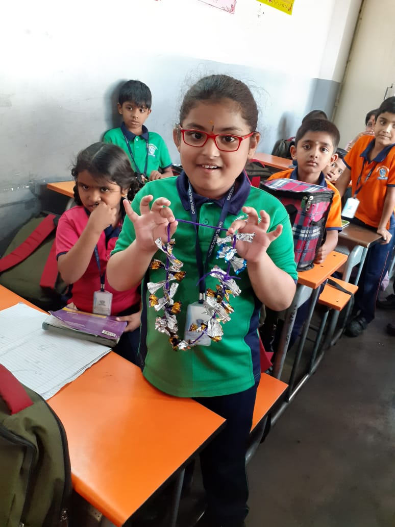 We conducted the Co-curricular activity on 07-11-19. Students from I to IV standard participated in making garlands using chocolate paper. They were using different materials like chocolate papers, thread, stickers to make colourful garlands. As this activity helped the students to show case their creativity in making beautiful garlands. Students participated joyfully and they were excited.