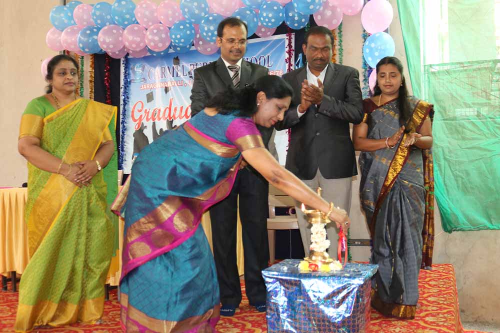 The Graduation Day was held on 02-03-19 Saturday.The occasion was graced by the chief guest Dr,Shyam Prasad Bhat Ph.d chemistry, M.Sc,M.B.A and M.COM.Director and Head,Center for culture policy and Research studies and Jnana Sakthi Academic, Bangalore.The event began with the lighting of the lamp followed by invocation song.The chief guest motivated the student by his speech.The gift were presented to the student as the memory of carmel school.Our principal lit the candles that were held by graduates.The graduates pass the candles to ninth standard students.The student of tenth gifted a pooja lamp for school.The celebration ended with delicious lunch.
