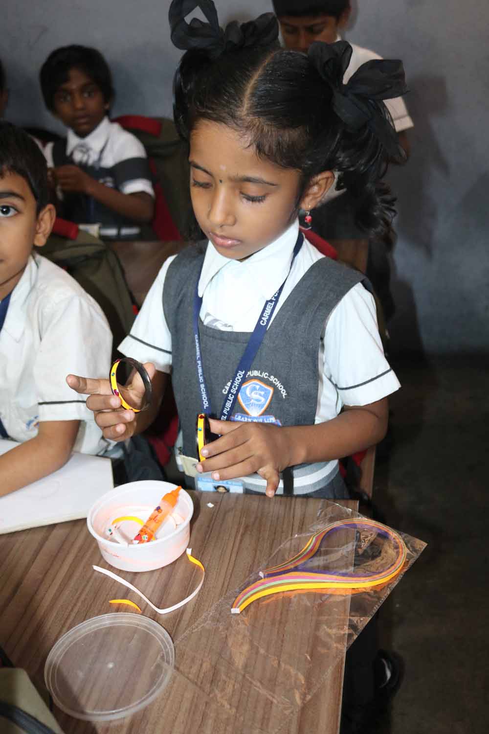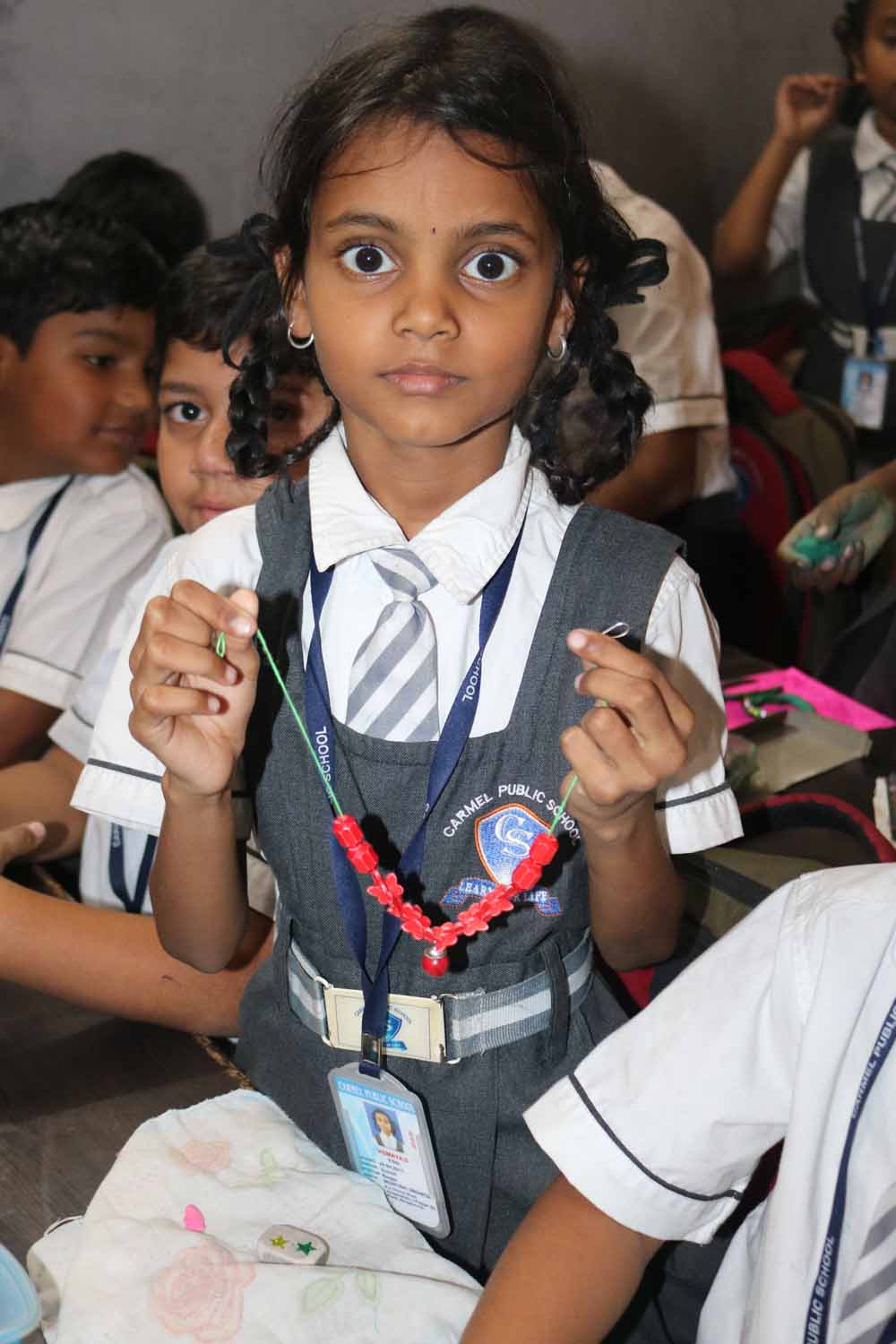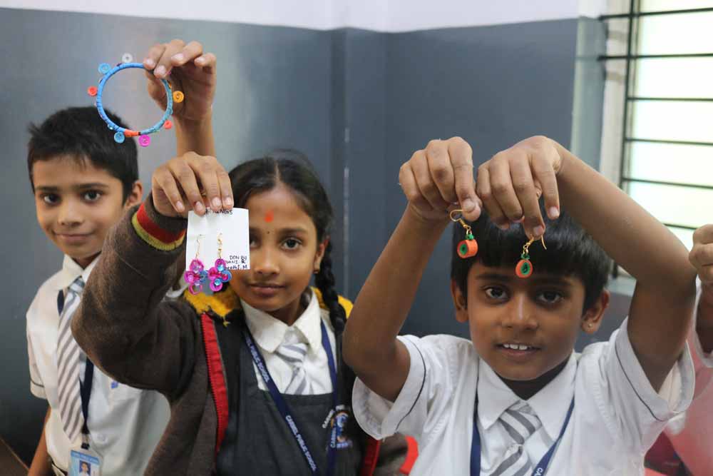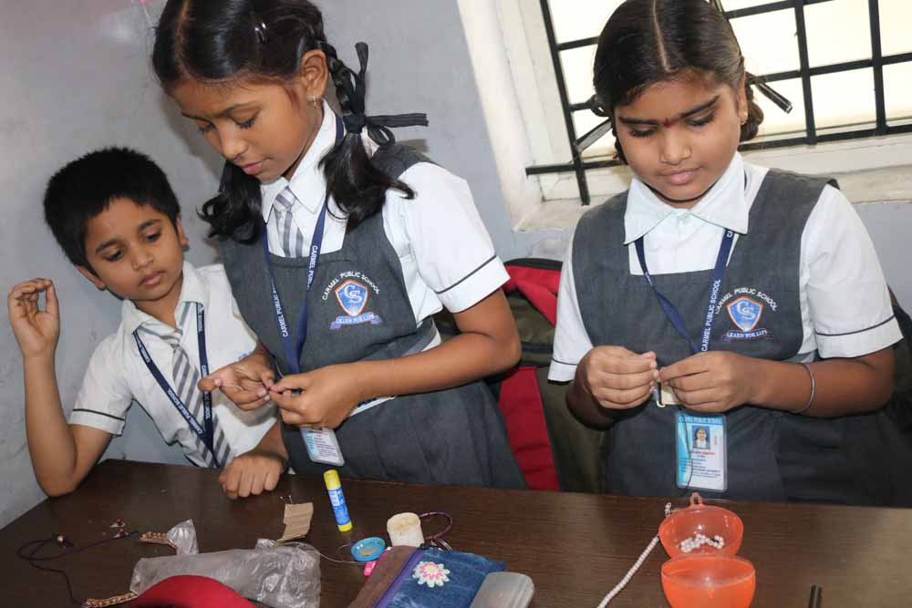 We conducted the co-curricular activity of “Jewellery Making” competition on 25-07-19.Students from I to IV participated.Students made different types of jewelleries like ear-ring,bangles,chains,rings etc by using different materials like quilling papers,clay etc..Students enjoyed the activity and became a jewellery designers.