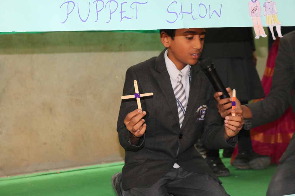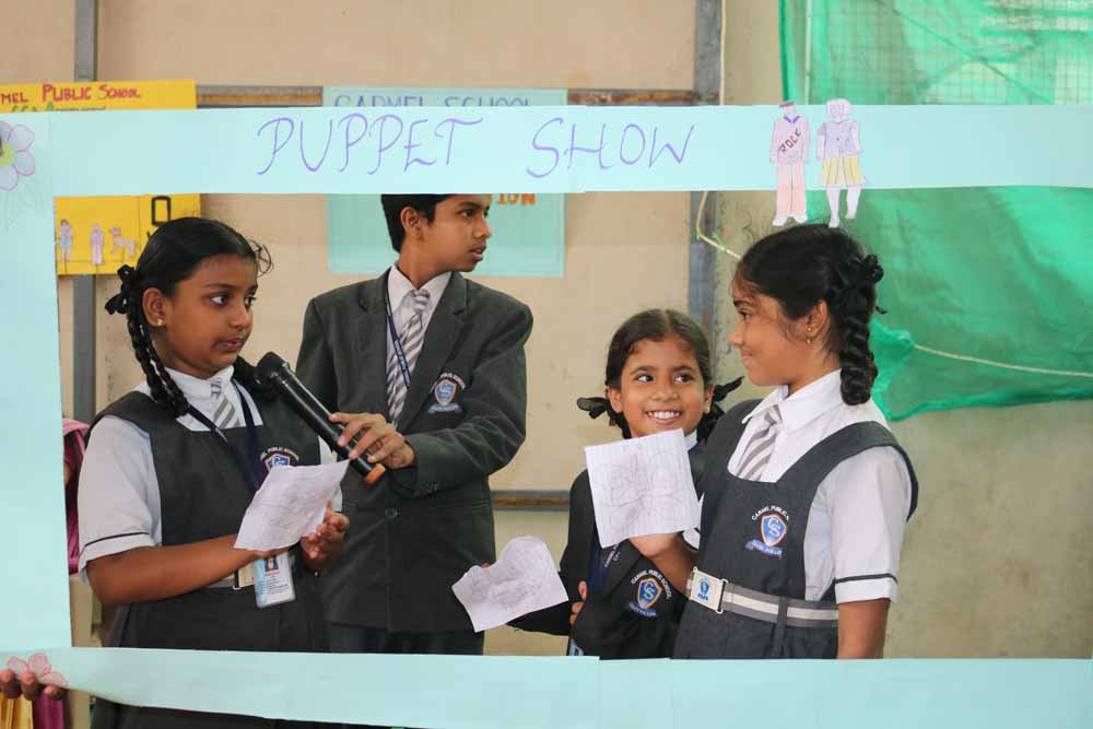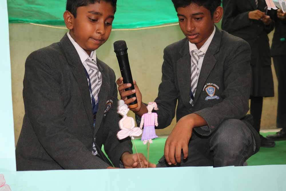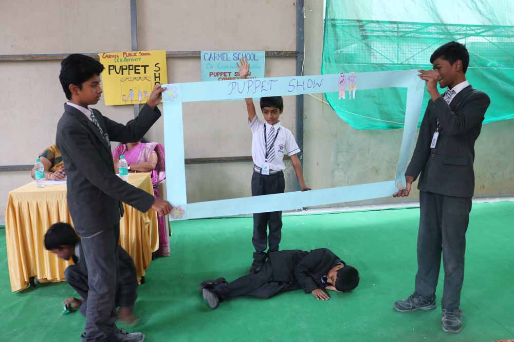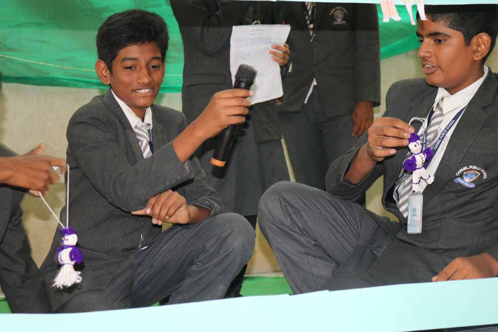 “Puppet show” competition had been conducted as a co-curricular activity.Students from V std to X std participated in this competition.Students had used different types of puppets like finger and sock puppet in the show.They had used rods,fingers,strings for the movements of puppets.Students not only played the puppet but also told the moral of the story.This activity helped the students to concentrate and capability of memorizing.