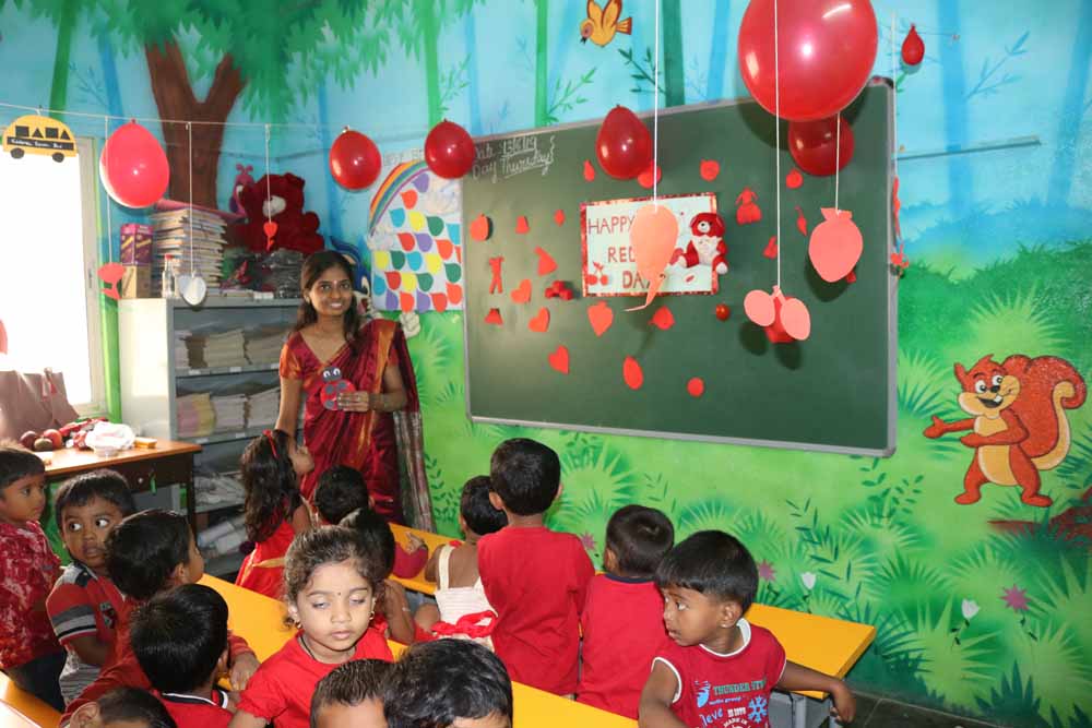 Our Nursery,L.K.G and U.K.G children celebrated Red day on 13-06-19 Thursday.All the little ones dressed up beautifully in red colour clothes.The class was decorated with red balloons and red colour hangings like fruits,flowers,toys etc..