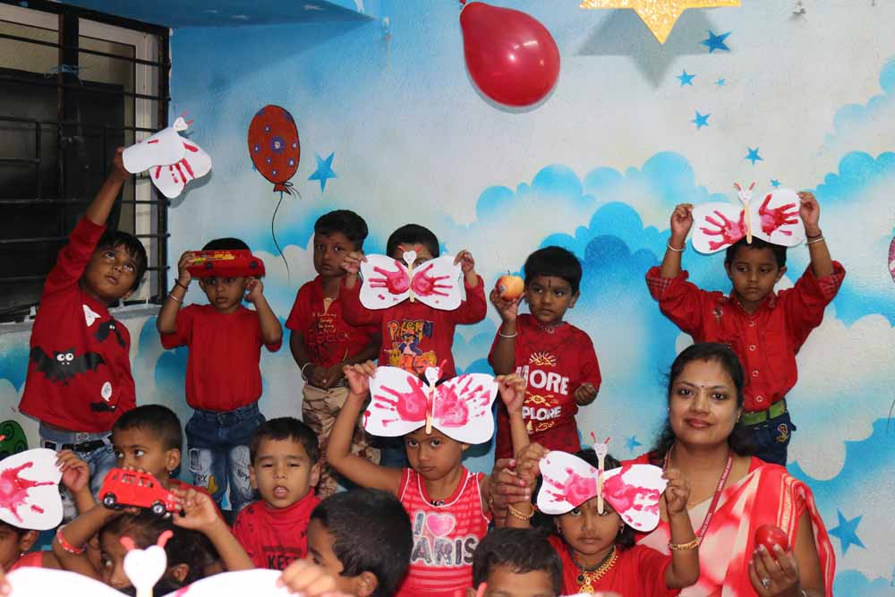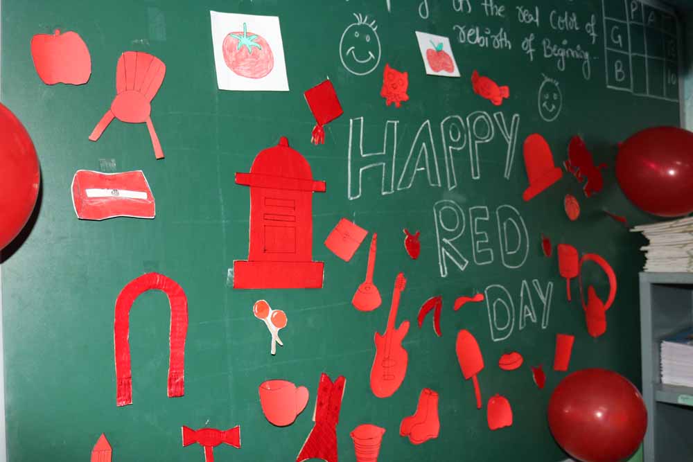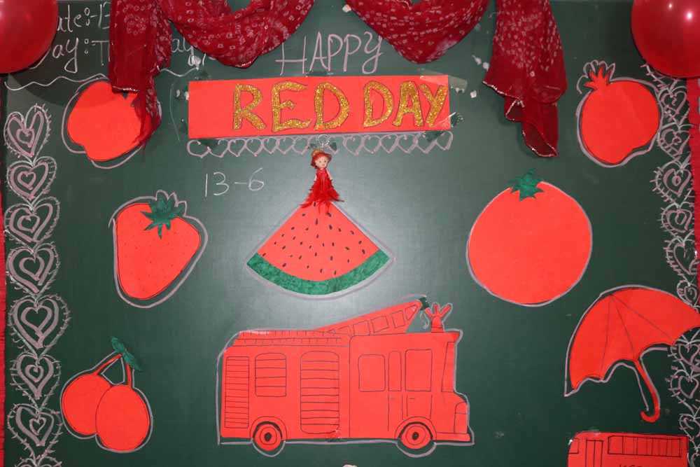 The day started by singing Red rhymes and continued with activities related to red colour. All the children participated and everyone was very happy.The day ended with red colour fruit fest.