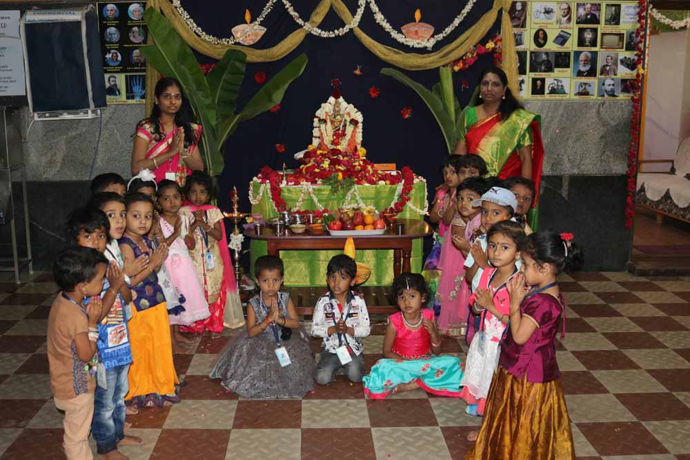 Saraswathi pooja was celebrated in our school on 8-3-19. On this auspicious day, the student’s and faculty of our school came together to seek the blessings of the goddess saraswathi. At the end of the day, distributed prasadam to everyone.